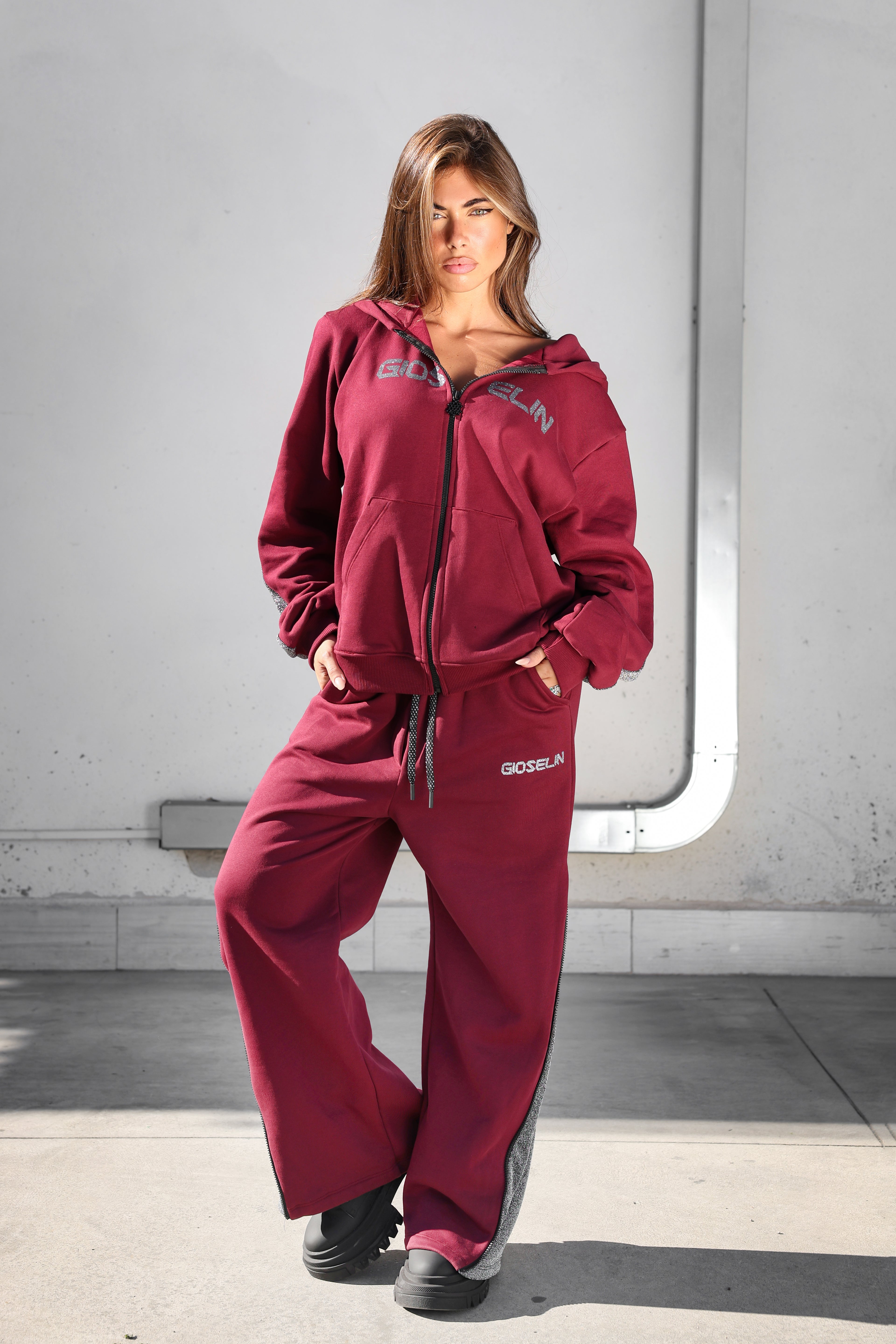 Le survêtement Bordeaux Lurex est la nouvelle pièce incontournable de la collection hiver Gioselin, conçu pour celles et ceux qui recherchent un confort absolu sans sacrifier les détails exclusifs. Doté d' une doublure polaire chaude et enveloppante , il est idéal pour les journées les plus froides et vous assure un style impeccable en toutes circonstances.