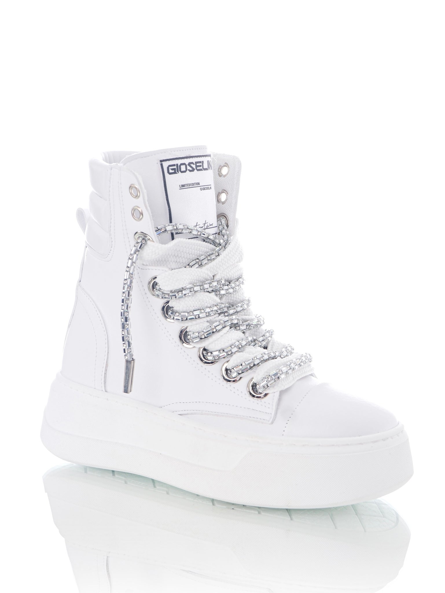 Nous sommes fiers de vous présenter l'un des joyaux de la nouvelle collection 2025 de Gioselin : les chaussures "Nit-up Tennis". Ce modèle représente une fusion parfaite entre innovation et luxe, où le design italien le plus avancé s'enrichit de détails brillants qui captent chaque regard. Avec le « Nit-up Tennis », chaque pas deviendra une expérience inoubliable de style et de raffinement.