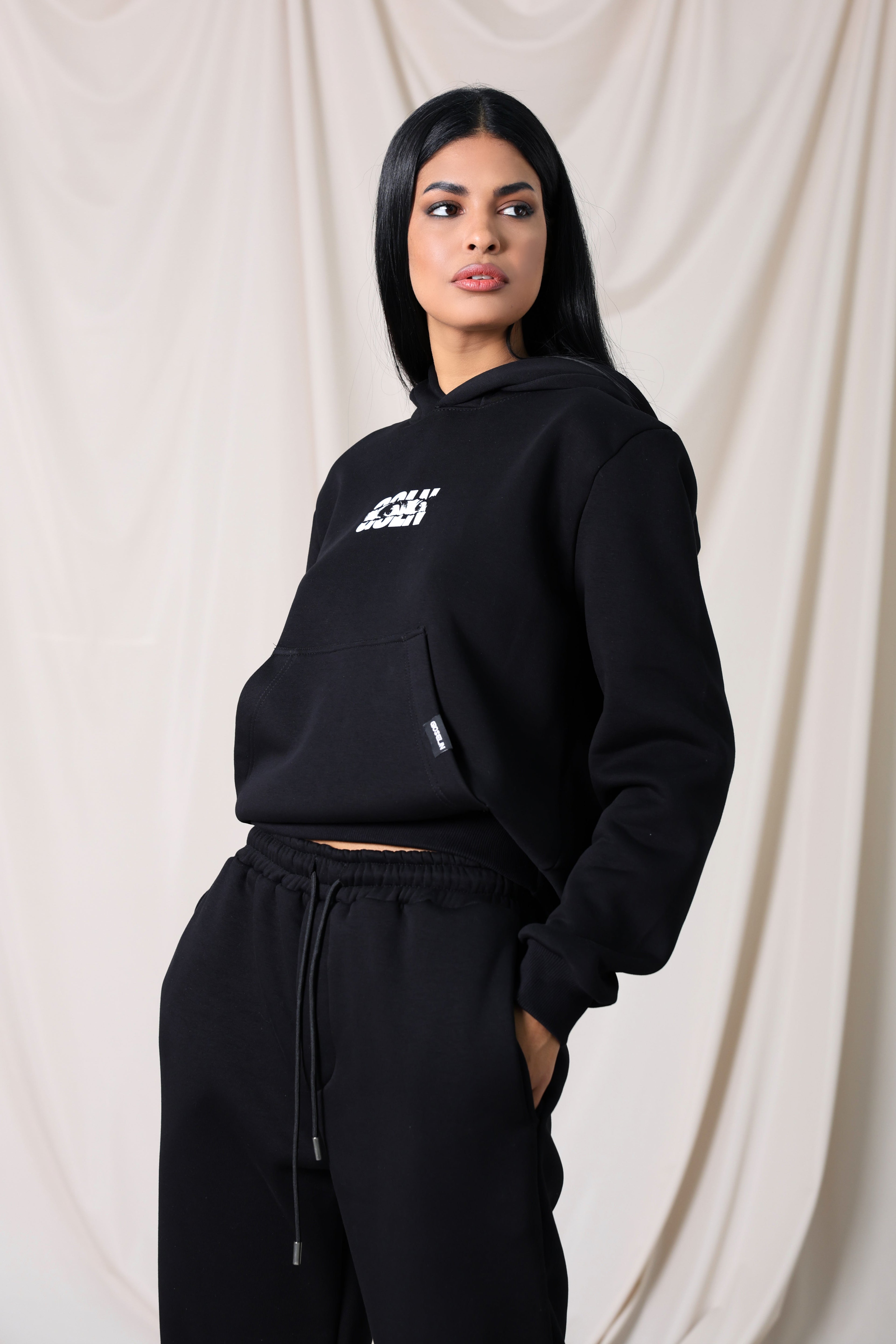 Le survêtement Black Eyes représente l'essence même du streetwear Gioselin : audacieux, polyvalent et idéal pour l'hiver grâce à son tissu chaud et polaire intérieur.